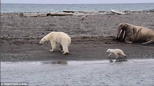 배고픔에 굶주린 북극곰 모자가 자신보다 덩치가 큰 바다코끼리에 손을 뻗치는 안타까운 장면이 담긴 영상이 공개됐다.