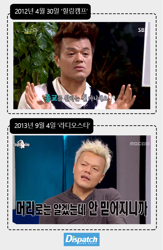 '디스패치' 확인 결과, 박진영은 당시에도 '구원'을 찾고 있었다.