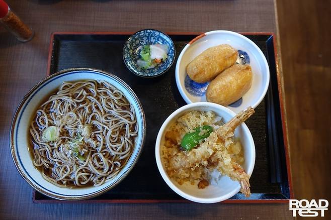 마에하라 갤러리 근처는 식당도 커피숍도 없는 오래된 주택가. 구글맵 검색을 통해 찾은 소바 전문점까지 거리는 차로 약 10분. 한적한 국도변 음식점인데 상당히 맛있다. 보통 일본의 우동 소바 전문점은 우동과 소바 중에 선택할 수 있다. 반면 이곳은 소바만 가능하다. 시내를 벗어나 자리한 대부분 음식점과 편의점은 주차장을 갖췄다.