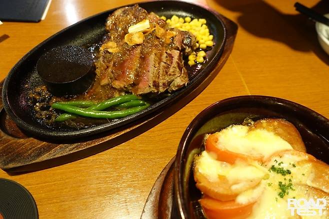 렌터카 반납 후 오쿠보역 근처 스테이크 전문점에서 하루를 마무리했다. 등심 스테이크와 햄버그스테이크, 뽀빠이를 주문했다. 일본에 오면 후배커플과 늘 들르는 곳이라 할인까지 받았다. 차슈는 서비스로 나왔다.