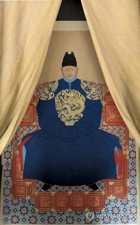 (전주=연합뉴스) 전수영 기자 = 조선왕조의 본향인 전주에는 태조 이성계 초상화(御眞·어진)를 모신 경기전(慶基展·사적 제339호)이 있다. 정전 중앙의 감실에는 푸른 곤룡포에 임금만이 쓰는 모자인 익선관을 쓴 태조가 용상에 앉아 있다. 현재 정전의 어진(사진)은 권오창 화백이 1999년 모사한 것으로 고종 때 모사한 태조 어진(국보 제317호)은 어진박물관 수장고에 옮겨져 있다. 2018.4.11