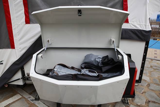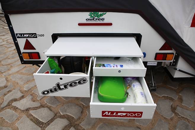 텐트 트레일러는 주방이나 화장실이 제외된 모델이라 불편할 수 있지만 후면부에 수납 공간이 마련되었고 다양한 용도로 활용 가능하다. 대부분 요리를 위한 도구와 가스버너, 테이블 등으로 활용하게 된다.