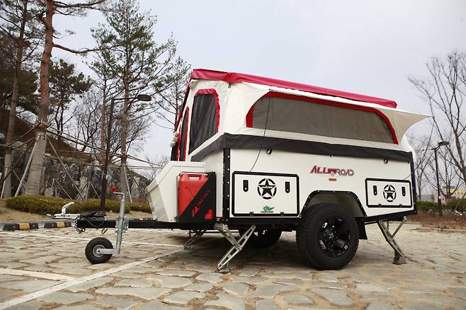 캠핑 트레일러의 인기는 해마다 꾸준한 증가세를 보인다. 최신 카라반과 캠핑카에 대한 인기에 밀려 텐트 트레일러들이 매체에 스포트 라이트를 못 받고 있지만 2018 캠핑앤피크닉페어를 통해 또 다시 주목을 받게 되었다. 오늘 만나게 되는 텐트 트레일러는 3,600리터의 수납 공간을 자랑하는 ALLROAD T400 모델이다. 무게는 500kg이라 성인 한 명이면 밀거나 당겨 움직일 수 있는 경량 트레일러이다.