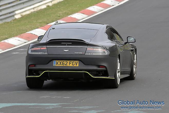 애스턴 마틴이 작년 제네바 모터쇼에서 발표했던 서브 브랜드 AMR에는 라피드도 포함되어 있었다. 이번에 라피드의 양산형 모델이 포착되었는데, 당시 공표했던 대로 6.0L V12 엔진을 탑재해 최고속력 210마일(337km/h)을 발휘하게 될 것으로 예상된다. 작년 여름에 공개된 밴티지 AMR과 동일한 엔진을 탑재하는 것이다.