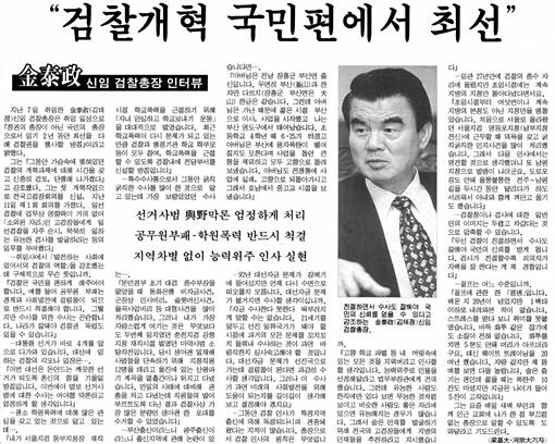 김 전 장관이 거짓말을 한 걸까요? 그렇지는 않습니다. 김 전 정관은 검찰총장 시절이던 1997년 8월 18일에 나온 동아일보 인터뷰 기사에서 출신 지역에 대해 다음과 같이 밝혔습니다.