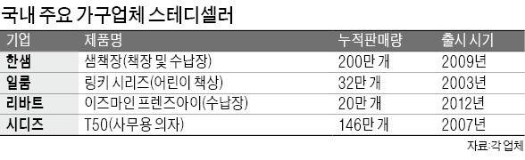 가구업계 관계자는 “유행이 빠른 국내 가구업계에서는 3년만 꾸준히 팔려도 ‘히트 상품’이라고 한다”며 “그 이상 꾸준히 팔린 제품은 제조사 실적에 크게 기여하는 효자상품이 된다”고 설명했다.