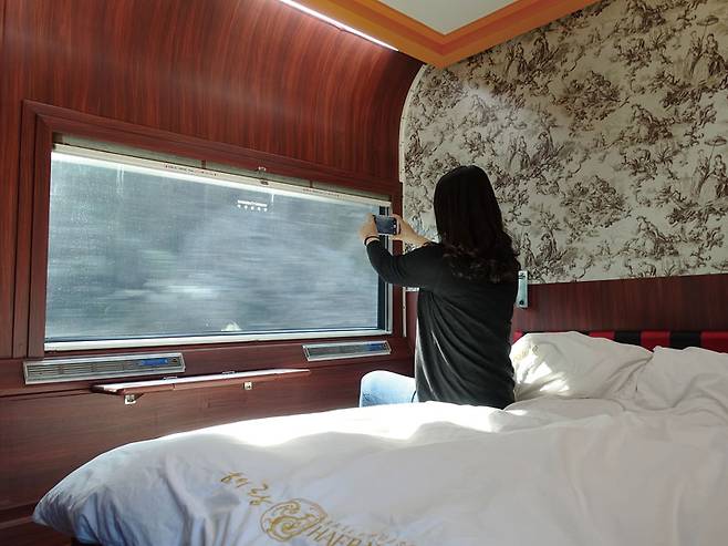아내의 그 모든 호기심의 종착역은 객실이다. “와! 생각했던 것보다 넓으네, 통유리로 바깥 경치도 다 들어오고, 침대도 충분하네…”. 객실 한 쪽은 커다란 통유리여서 시원스럽고, 벽면은 거울이어서 그런지 실제보다 더 넓어 보인다. 해랑 로고가 박힌 새하얀 침대보가 통유리를 뚫고 들어온 햇살을 받아 더 하얗게 빛난다. 영화에서 봤던 오리엔트 특급열차보다 백배는 좋지 않으냐고 물으려 보니, 아내는 어느새 샤워실에 매료돼 있다. 아담하지만 샤워하는 데는 전혀 비좁지 않다. 기차 안이라는 점을 상기하면 차라리 감동이다. 달리는 기차 위에서 따뜻한 물로 샤워를 즐기다니! 유럽 야간열차에도 샤워실 딸린 침대칸은 드물다고 짐짓 아는 체를 하니 듣는 둥 마는 둥 헤어드라이기도 있고 화장실도 비데라며 흡족해한다. 뽀송뽀송한 수건과 비품에도 마음을 연다. 어딜 가든 그런 게 여자들을 감동시킨다.