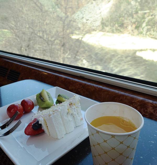 침대에 누워 베개 높이도 맞춰보고 사진도 찍고 언제든 승무원과 통화할 수 있는 전화기도 만지작거리는 등 부산을 떠는가 싶더니, 디럭스룸이 이 정도면 스위트룸은 더 근사하겠는걸, 다른 객실로 호기심을 보낸다. 해랑의 객실은 4가지다. 디럭스룸과 스위트룸은 2인1실 객실인데 호화롭기는 스위트룸이 단연 앞선다. 킹사이즈 침대에 냉장고와 소파도 갖췄다. 주문형 영화감상 모니터도 딸렸다. 패밀리룸은 3인 가족을 위한 객실로 싱글침대가 2층에 하나 더 있다. 4인실인 스탠다드룸은 공간 제약 상 샤워실과 화장실은 객실 밖 공용시설을 사용한다. 해랑 열차는 1호기와 2호기 두 대인데, 모두가 선망하는 스위트룸은 1호기에만 있다. 1호기는 탑승 정원도 54명으로 2호기 72명보다 적다. 스위트룸이면 어떻고 패밀리룸이면 어때, 우리나라에 단 두 대 밖에 없는 거잖아! 아내가 쿨하게 스위트룸에 대한 호기심을 접는다. 400~500명이 탔던 기차를 고작 50~70명이서 독차지한다고 생각해봐, 진짜 호사지. 기회를 놓치지 않고 맞장구친다.