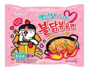까르보 불닭볶음면은 액상스프와 모차렐라 치즈 분말, 크림맛 분말 등이 함유된 분말스프를 넣어 한국식 크림파스타 맛을 재현해냈다. 매운맛 때문에 불닭볶음면을 꺼렸던 소비자들을 위해 맛을 순화시켰다. 매운 정도를 나타내는 '스코빌지수(SHU)'가 2300으로 기존 불닭볶음면(4404SHU)의 절반 수준이다. 회사 관계자는 "카르보나라 파스타 맛을 첨가하니 매운맛을 즐기지 않는 40·50대가 새로운 소비층으로 합류했다"고 말했다.