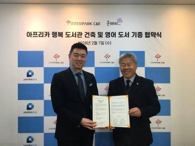 이번 협약을 통해 인터파크씨엔이는 교육 환경이 열악한 아프리카 지역에 '행복 도서관' 건축 지원 및 영어 도서 구매를 위한 기부금을 전달하기로 했다.