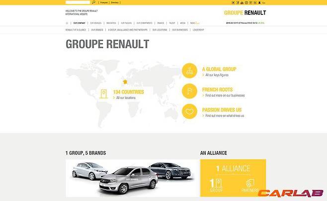 홈페이지도 마찬가지다. 르노삼성 홈페이지에 쓰인 노란색의 색상 코드는 'ffcc33'이다. 르노 홈페이지에 쓰인 색상코드 역시 'ffcc33'이다. 비슷한 색이 아닌 완전히 똑같은 노란색이라는 뜻이다.