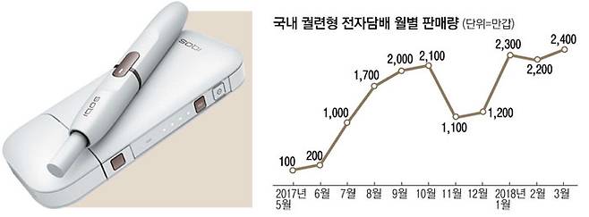 대표적인 궐련형 전자담배 '아이코스(IQOS)'에는 이런 의미가 담겨 있다. 지난해 5월 필립모리스가 아이코스를 한국에 들여온 이후 올해 들어 3월 말 현재 국내에서 팔린 아이코스는 1억6300갑에 달한다. 이 같은 인기몰이가 가능했던 것은 일반 담배에 비해 전자담배가 몸에 덜 나쁠 것으로 생각한 애연가가 대거 전자담배로 갈아탔기 때문이다. 실제로 전자담배 제조업체들은 전자담배가 일반 담배보다 유해물질이 최대 90~95% 적다며 대대적인 홍보전을 펼쳤다.