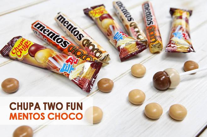 농심이 화이트데이를 기념해 최근 출시한 '츄파춥스 투펀'과 '멘토스 초코롤'로, 기존 한가지 맛에서 벗어나 초콜릿과 바닐라 등 두 가지 맛을 한 번에 즐길 수 있어 매력적이라는 평가다.