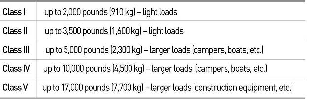 볼 마운트는 단일 규격, 단일 사이즈의 기본형과 높낮이 조절이 가능한 변환타입, 높은 견인차에서 낮은 트레일러의 커플러 결합을 위한 드롭 타입으로 구분되는데 미국 견인장치 관련된 분류는 피견인차의 총중량, 무게를 기준으로 선택하면 된다. 여기에 수입 제품이 아닌 국내 제작 견인장치라면 약간의 차이를 보일 수 있다.