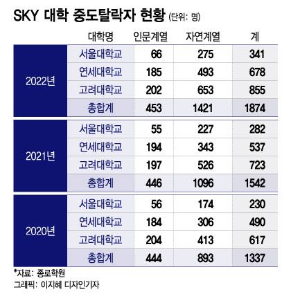 입시업계는 '이공계 엑소더스'와 '의대 블랙홀'을 같은 맥락에서 해석한다. 종로학원에 따르면 지난해 서울대와 연세대, 고려대의 중도탈락자(자퇴생 등)는 1874명이다. 이 중 자연계열 중도탈락자만 1421명이다. 'SKY 대학' 자연계열의 중도탈락자는 매년 늘어나는 추세다. 카이스트(KAIST·한국과학기술원)의 지난해 중도탈락자도 100명이다. 지방대 의대를 그만두고 수도권 의대로 진학하는 수요 역시 상당하다.