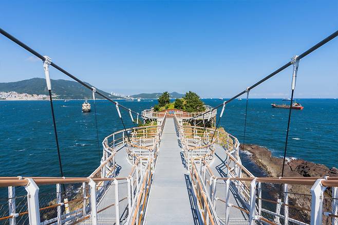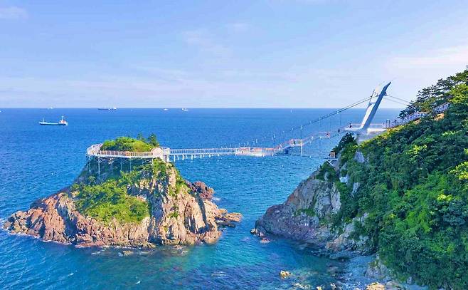 부산 서구 암남공원과 동섬을 잇는 송도용궁구름다리는 바다 위를 걸으며 천혜의 해안 경관을 감상할 수 있는 대표 명소다.