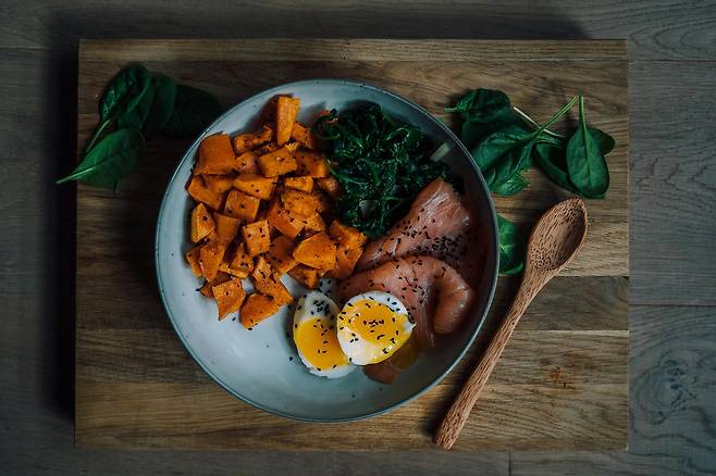 Day1 : 아침(삶은달걀2+귀리) 점심(연어+퀴노아) 저녁(닭가슴살+채소) / 총단백 1.3 g/kg.