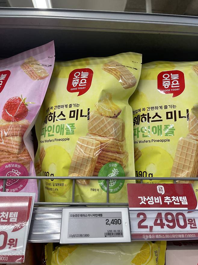 상큼하고 달콤한 파인애플 맛이 웨하스의 바삭한 식감과 잘 어울려요.