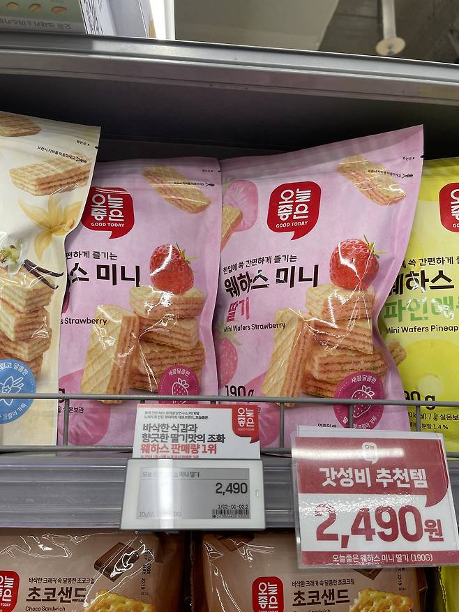 오늘좋은 웨하스 미니 딸기는 상큼하고 달콤한 딸기 맛이 더해진 웨하스 제품이에요.