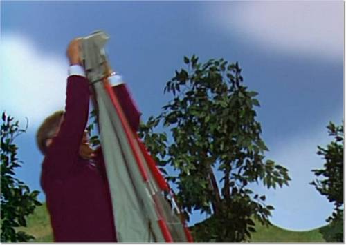 영화 속 로저스 아저씨가 스튜디오에서 텐트를 설치하려고 한다. 아이들에게 ‘내가 텐트 설치하는 방법을 알려줄게’ 에피소드다. 텐츠 설치를 앞둔 로저스의 표정이 자상하지만 다소 ‘엄근진'(엄격, 근엄, 진지)한 느낌도 든다. 그.런.데….
