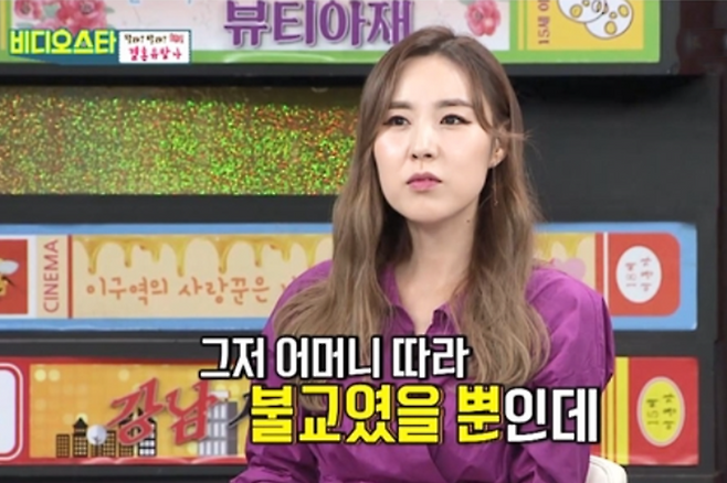 이날 간미연은 “신앙이 뚜렷한 게 있던 게 아니다. 어머니가 절에 다니셔서 저도 가끔 갔다. 종교가 뭐라고 하면 불교라고 했을 뿐이다”고 밝혔다.