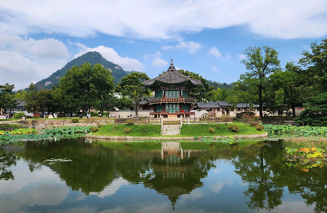 ▶ 유래 및 특징: 조선 태조가 세운 첫 궁궐로, 근정전과 경회루 등 한국 전통 건축의 정수를 보여줍니다.