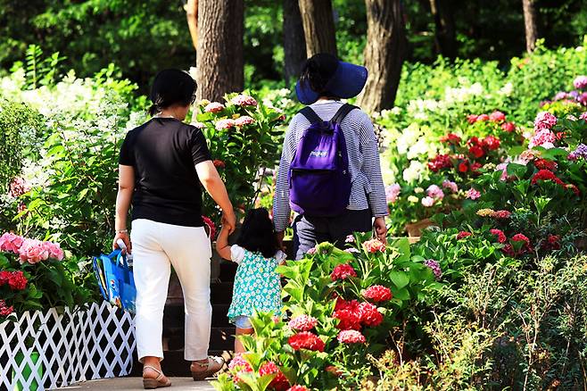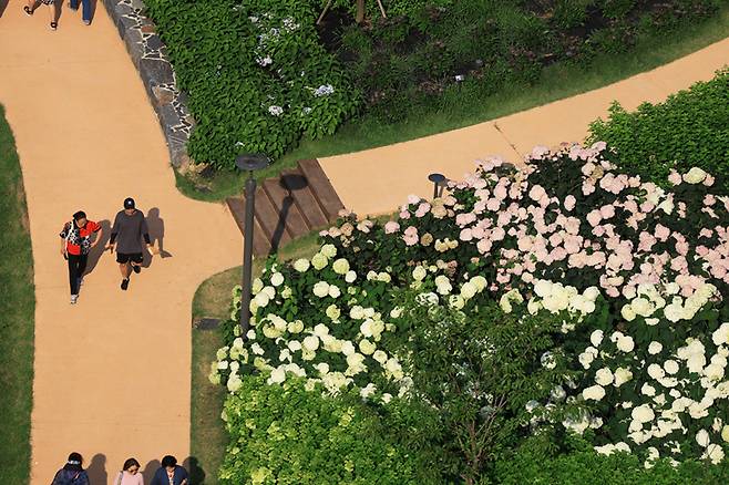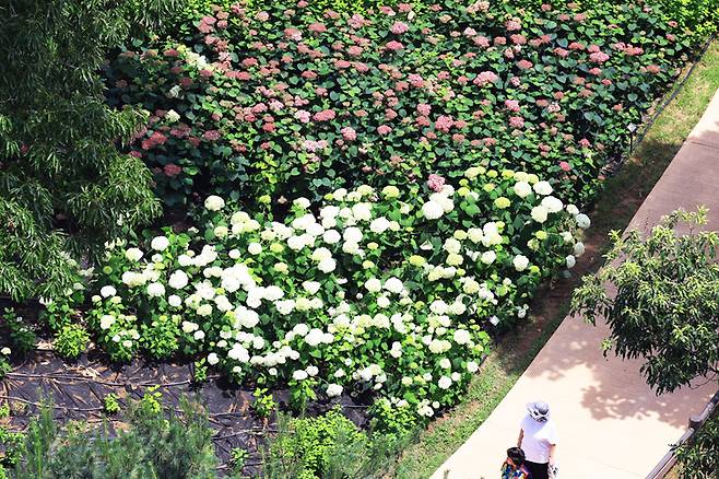 한때는 불법 경작과 방치로 몸살을 앓던 초안산 자락. 그러나 지금 이곳은 서울 안에서 가장 아름다운 수국을 만날 수 있는 공간으로 거듭났다.
