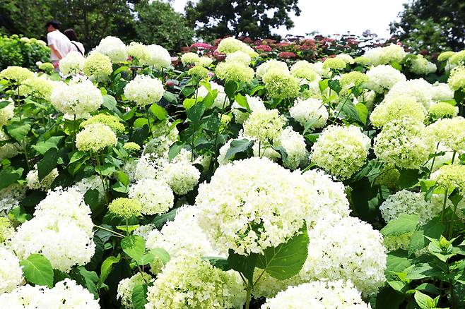 산책로를 따라 걷다 보면 수국 사이로 물레방아, 작은 폭포, 생태연못이 이어져 마치 꽃과 물이 함께 춤추는 풍경을 이룬다. 수국이 만든 ‘숲의 길’은 단순한 정원이 아닌, 과거의 흔적을 치유한 회복의 공간이자 시민들을 위한 열린 자연이다.