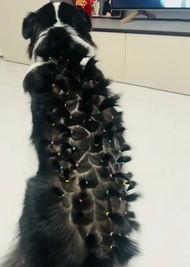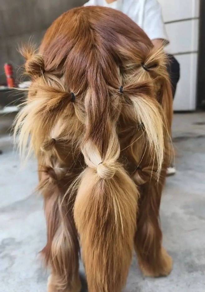 한 네티즌은 반려견의 꼬리털을 예쁘게 땋았습니다. 그랬더니 강아지의 머리가 꼬리에 달려있는 것 같습니다.