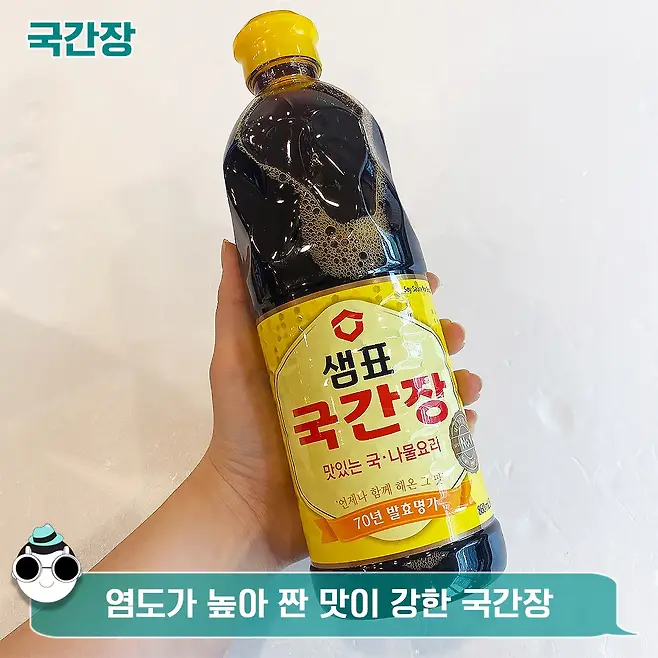 국간장은 국~에 사용! 외우기 쉽죠? ㅎㅎ 국간장은 주로 국의 간을 맞출 때 사용하는 간장입니당.음식의 색을 변하게 하지 않으면서 짜기 때문에 국물용으로 적합해요. 국물이 너무 싱거운데? 싶으면 저희가 국간장을 넣게 되는 것이죠!