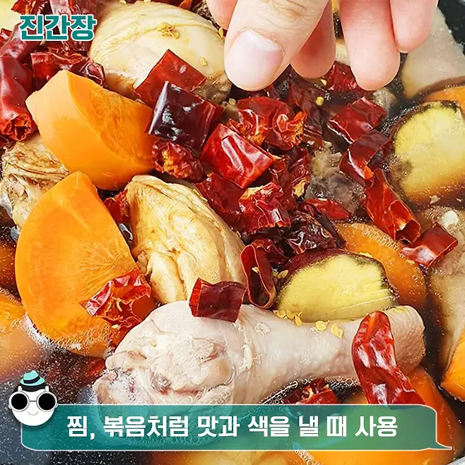 진간장은 어떤 요리에 활용이 되는 것일까요? 후후 진간장은 열을 가하는 대부분의 요리에 사용된다구~ 그저 요.알.못 들에게 그저 빛인 진간장★ 열에 강하기 때문에 찜, 볶음처럼 맛과 색을 내는 요리에 사용해요. 음식 종류에는 찜닭, 코다리조림, 어묵 볶음이 있답니다~