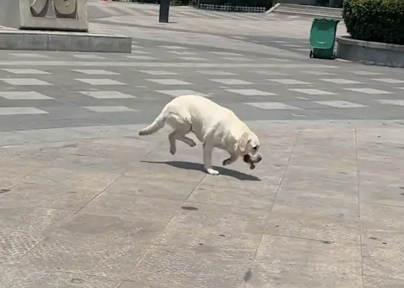강아지는 한 발을 들었다가 다른 발을 내려놓으며 간신히 버텨보려 했습니다. 하지만 여전히 뜨거움에 당황스러워했습니다.
