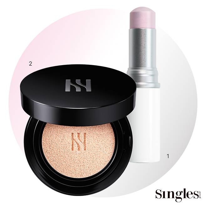 요즘 베이스 트렌드를 꼽으라면 ‘속광’을 빼놓을 수 없다. 피부 겉면에 광이 직접적으로 드러나는 물광, 꿀광을 지나 피부 속에서부터 올라오는 것 같은 건강한 속광이 떠오른 것. 특히 아이돌의 무대 메이크업을 통해 바이럴되며 확실한 트렌드로 자리 잡았다. 우선 광을 돋보이게 하기 위해선 깨끗한 베이스가 중요하다. 제니가 헤라와 함께한 화보에서는 블랙 쿠션 파운데이션을 활용했는데, 커버력과 밀착력이 높은 제품을 얇게 도포하고 커버가 필요한 부위에 추가로 터치를 하면 얇고 깔끔한 베이스를 완성할 수 있다. 여기에 속광을 더해줄 킥 아이템은 바로 밤 타입 광채 스틱!