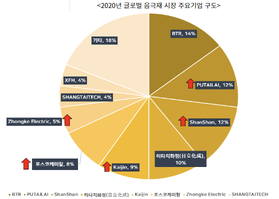 음극재는 흑연화 가공 과정에서 에너지 소모가 크고, 환경오염 물질을 배출하는게 단점이다. 중국이 산업용 전기료를 인상하면서 음극재의 원가가 오르고 있고, 음극재 가격 인상을 부추기고 있다. 과거 음극재는 위탁 생산을 하는게 특징이었는데, 단가가 높아지면서 중국 업체가 직접 생산하는 분위기이다. 포스코케미칼은 그 동안 전기료 등 생산비가 높아 음극재 생산량을 확대하지 못했다. 앞으로 제품 단가가 높아지면서 수익성이 높아져 생산량을 확대할 계획이다.