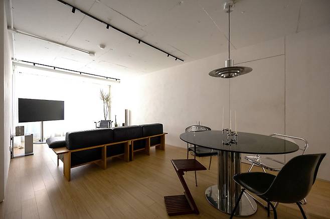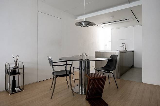 소파 뒤쪽에 만들어둔 다이닝 공간에서는 주로 식사를 하거나 커피를 마십니다. 간단한 컴퓨터 작업도 이곳에서 하고요.