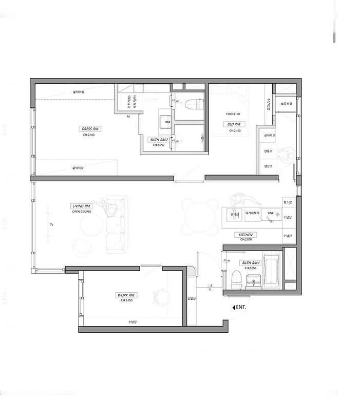 다음으로 드레스룸을 소개해 드릴게요. 옷이 꽤 많은 저희 부부는 드레스룸을 작은방이 아닌 안방에 만들기로 했어요. 구축 아파트의 구조상 거실보다도 더 넓게 나와 저희가 가진 액세서리부터 사계절 옷까지 깔끔하게 정리할 수 있을 것 같았습니다.