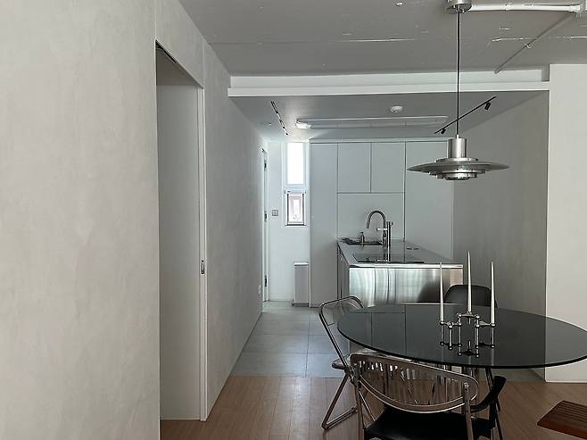 그럼 본격적으로 공간을 소개해 드릴게요. 저희는 공용부 전체가 스튜디오처럼 보이길 바라면서 꾸몄습니다. 평소에 많이 볼 수 있는 아파트의 형태가 아닌, 좀 더 다채로운 느낌이 되길 바랐던 것 같아요.