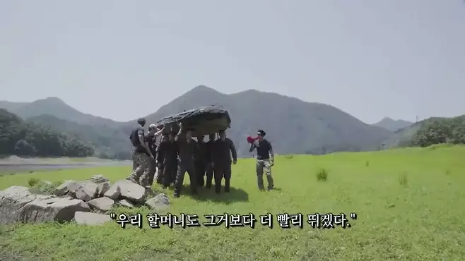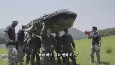 고무보트를 이고지는 IBS훈련 중 나온 말. 고무보트를 머리에 이고 훈련생들이 제대로 뛰지를 못하자 이근 대위가 쏘아붙인 말이다. 이근 대위의 유행어는 대부분 극한의 훈련 중 진지한 그의 말투에서 나온다.