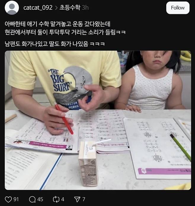 아빠한테 애기 수학 맡겨 놓고 운동 다녀왔더니 벌어진 일