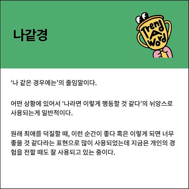 ‘나 같은 경우에는’의 줄임말인데