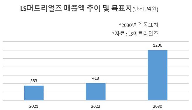 LS머트리얼즈 실적은 최근 상승세를 이어가고 있다. 지난해 기준 LS머트리얼즈 매출, 영업이익(별도 기준)은 각각 413억원, 55억원이다. 전년 대비 17%, 120% 증가했다. 매출의 85~90%는 수출을 통해 발생한다. LS머트리얼즈는 ‘2030년 매출 1200억원 달성’을 목표로 삼고 있다.
