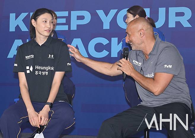 조던 라슨과 에다 에르뎀은 '김연경이 지도자가 되면 어떨 것 같느냐'는 질문을 받았다.