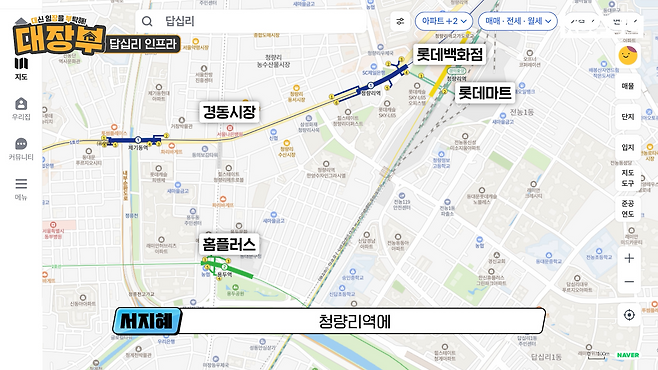 주변 인프라로는 청량리역 근처의 경동시장과 롯데마트, 홈플러스스페셜(동대문점), 그리고 왕십리 이마트와 롯데백화점(청량리역) 등을 이용할 수 있습니다.