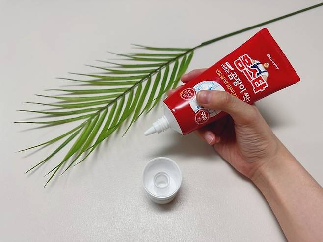 튜브 형태로, 뚜껑을 열면 뾰족한 입구로 짜기 쉽게 되어있어요.