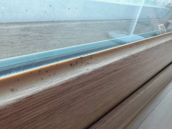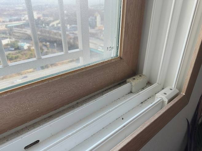 작은방 창문은 바깥 창과 안쪽 창 사이 공간에 물이 마르지 못해 곰팡이까지 피어버렸어요. 고여있는 물과 곰팡이 닦아낸다고 힘들었어요.