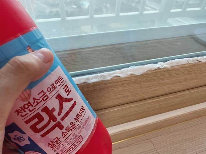 이제 창문 샷시의 실리콘에 있는 곰팡이를 없애 보아요!