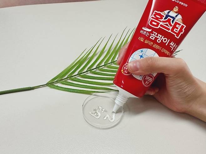 액체 형태가 아닌, 젤 형태로 흘러내리지 않아서 벽이나 실리콘에 바르기 좋아요. 착! 붙어있어요.
