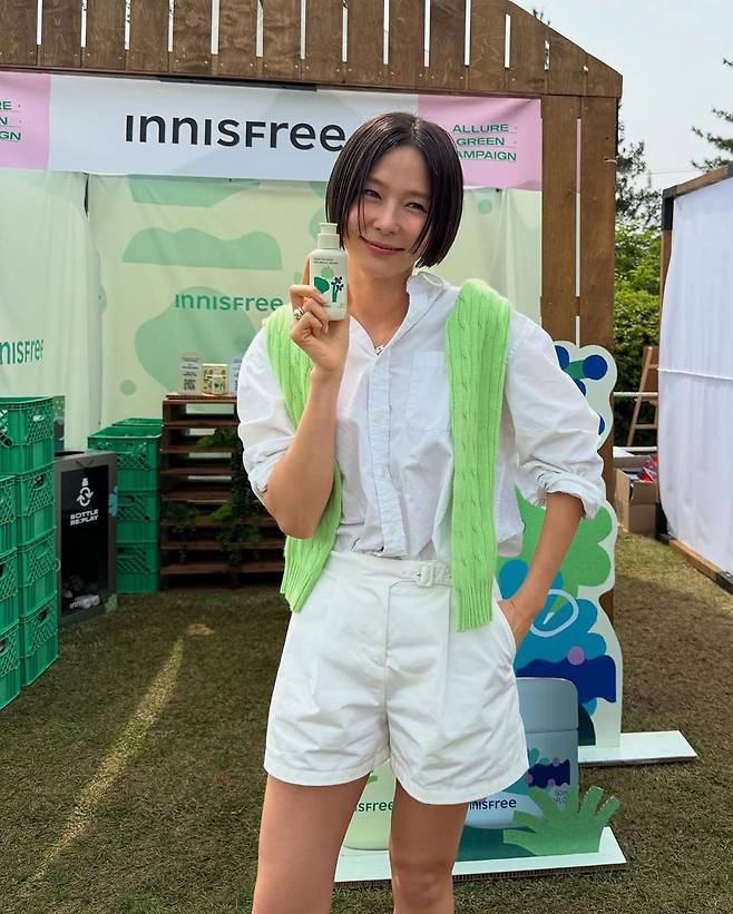 김나영이 인스타그램을 통해 공개한 ‘이니스프리 x 그린 얼루어 캠페인’ 현장 사진이 화제를 모으고 있다. 장소는 그랜드 워커힐 서울. 뷰티 브랜드 이니스프리가 22년째 이어오고 있는 ‘공병 수거 캠페인’ 부스 앞에서 포즈를 취한 그녀는 보기만 해도 청량한 올화이트룩으로 이목을 끌었다.