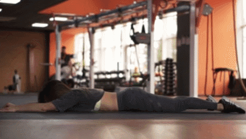 매트 위에 배를 대고 엎드립니다. 팔을 앞으로 뻗은 후, 오른팔과 왼발을 동시에 들어 올립니다. 천천히 원래 자세로 돌아오고, 왼팔과 오른발을 들어 올립니다.