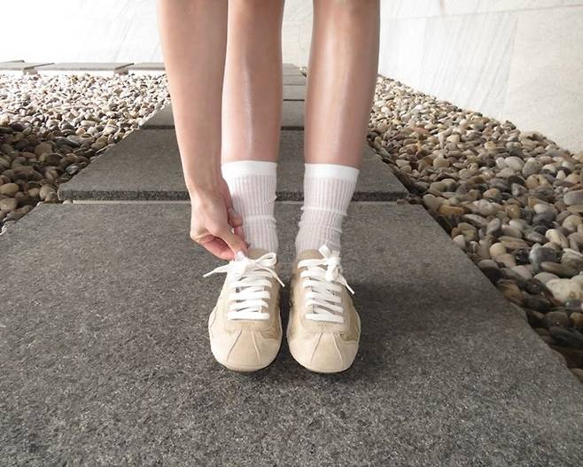 또 여기에 발목까지 올라오는 화이트 삭스와 스니커즈를 매치해 활동성과 캐주얼한 무드를 동시에 드러냈다.